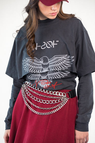 Ceinture à taille élastique composée de plusieurs chaînes en fer et dotée d’une fermeture à double pression